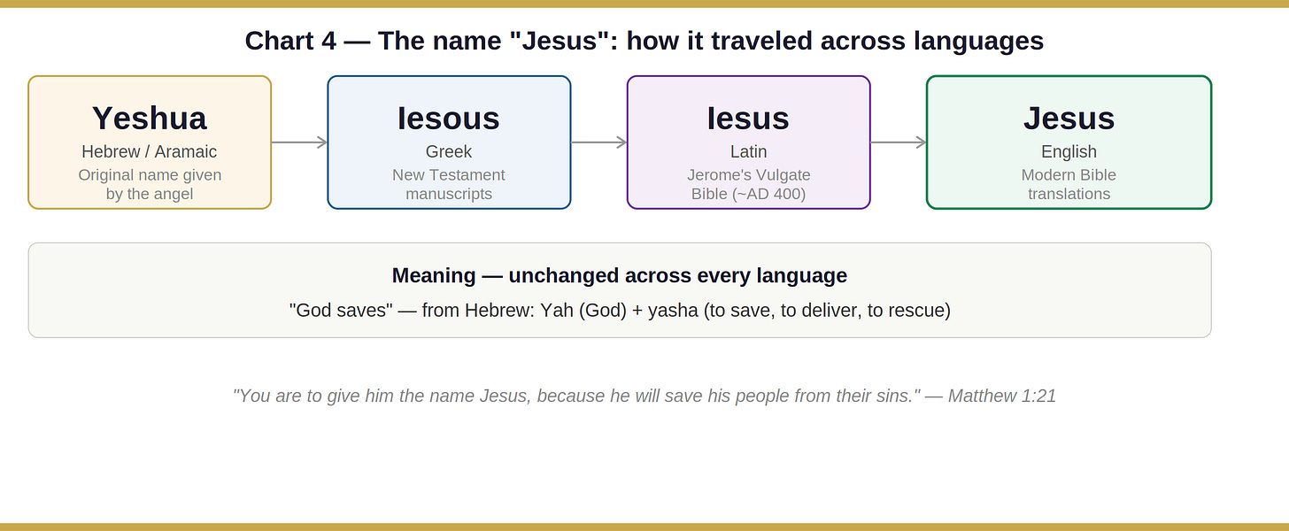 The angel also tells him to name the child Jesus: Yeshua in Hebrew, meaning “God saves.” The name carried the whole weight of the mission inside it.